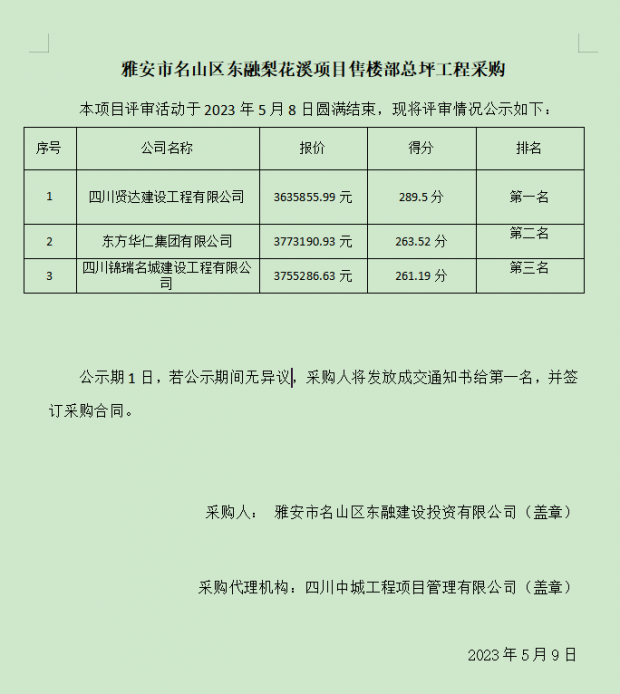 雅安市名山區(qū)東融梨花溪項(xiàng)目售樓部總坪工程采購
