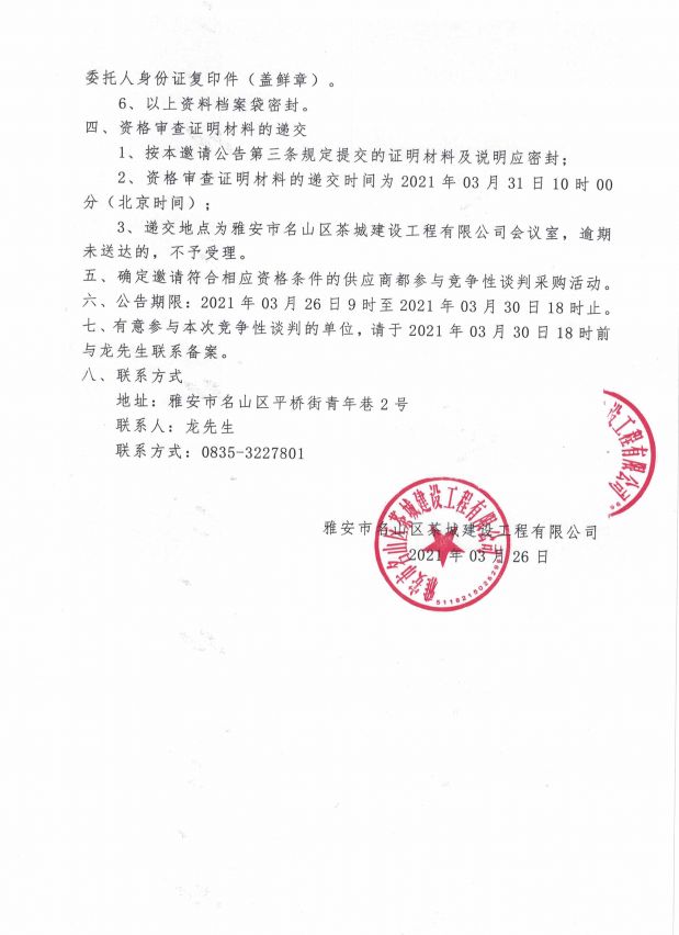 雅安市名山區茶城建設工程有限公司 關于公開招募2026年供應商入庫的公告...