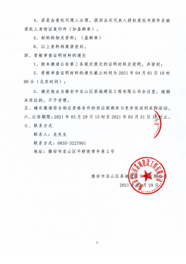 雅安市名山區茶城建設工程有限公司 關于公開招募2026年供應商入庫的公告...